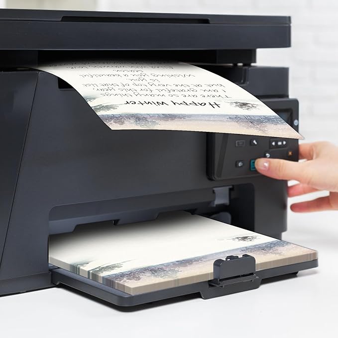 - Inkjet Printer Compatibility: The winter stationery compatible with most inkjet and laser printers,you can enjoy the convenience of personalization with your inkjet printer.This winter computer paper 8.5x11 allows you to effortlessly add a personalized touch to your invitations,announcements,and personal messages