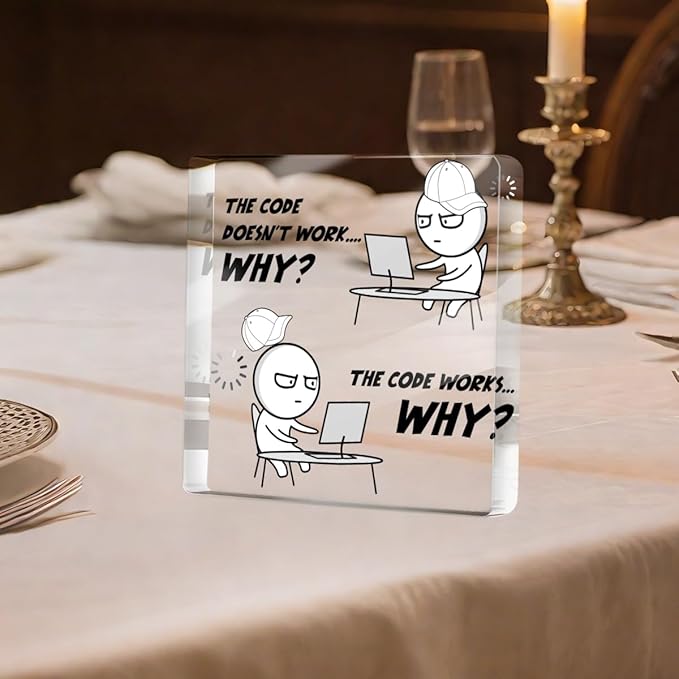 Funny Programmer Gifts for Men, It Tech Computer Science Engineering Gifts for Software Engineer, The Code Doesn't Work Why, Humorous Acrylic Plaque Desk Decorative Signs for Office Cubicle