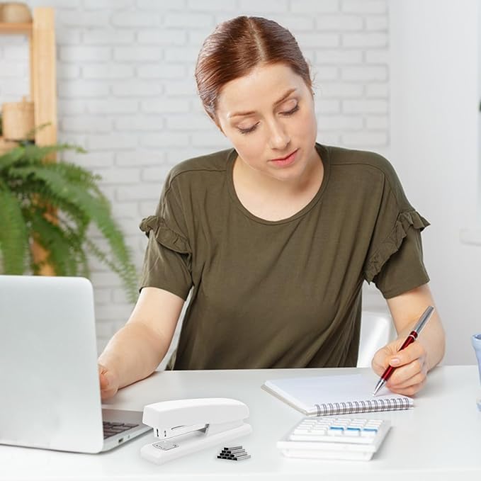 - 【NON-SLIP DESIGN】: This white staplers for desk equipped with a non-slip base to ensure stability during use and prevent the stapler from sliping on the desktop. Provide high-quality binding, smooth and sturdy staplers can help you complete your work quickly.
