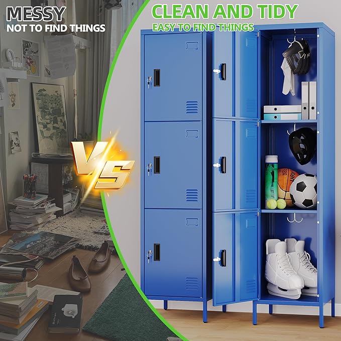 - Versatile Storage Option:Whether you need to organize books, sports equipment, office supplies, or personal belongings, this blue metal locker's three - compartment design provides a flexible and efficient storage solution. Assembly is straightforward with clear instructions included, and maintenance is as simple as wiping down the smooth metal surface.