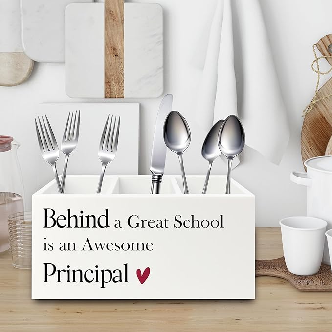 Principal Gifts Pen Pencil Holder Organizer for Desk, Gifts for Principals Women Men, Behind a Great School Is an Awesome Principal Wooden Box Sign for Office Workplace Desk Tabletop Decorations