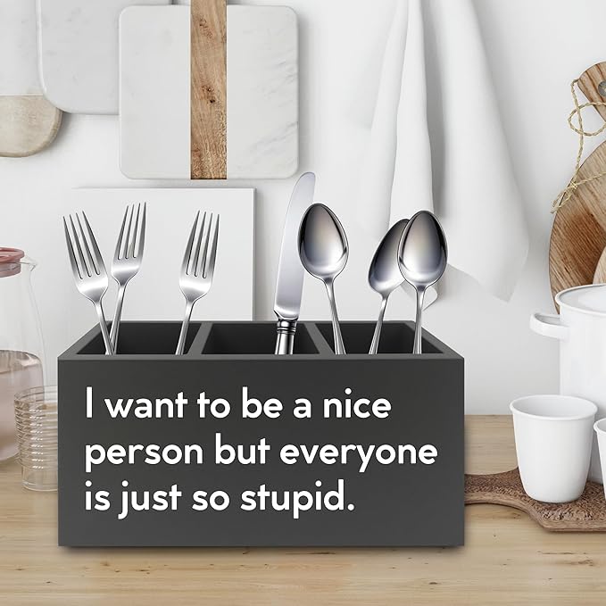 Funny Pen Pencil Holder Organizer for Desk, Sarcastic Gifts for Women Men Coworkers, Office Humor Gifts, Funny Wooden Box Sign for Home Office Desk Tabletop Decorations