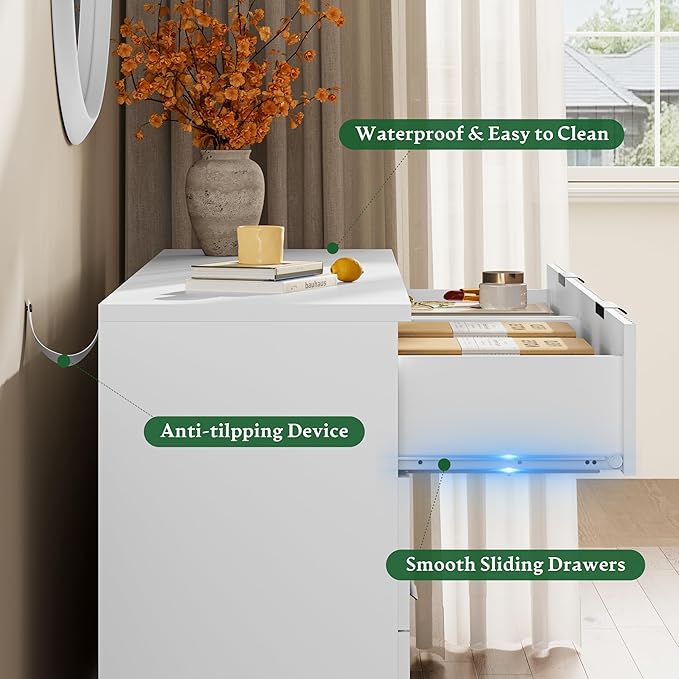 - 【Solid Material & Study Construction】The dressers & chests of drawers are constructed from optimal MDF, P2 engineered wood and coated metal handles which not only have exquisite texture, but also ensure long-term use and are scratch resistant. Each drawer holds up to 35 lbs and the thickened tabletop can support up to 150 lbs. For easy cleaning, just wipe with damp cloth and get it air-dried
