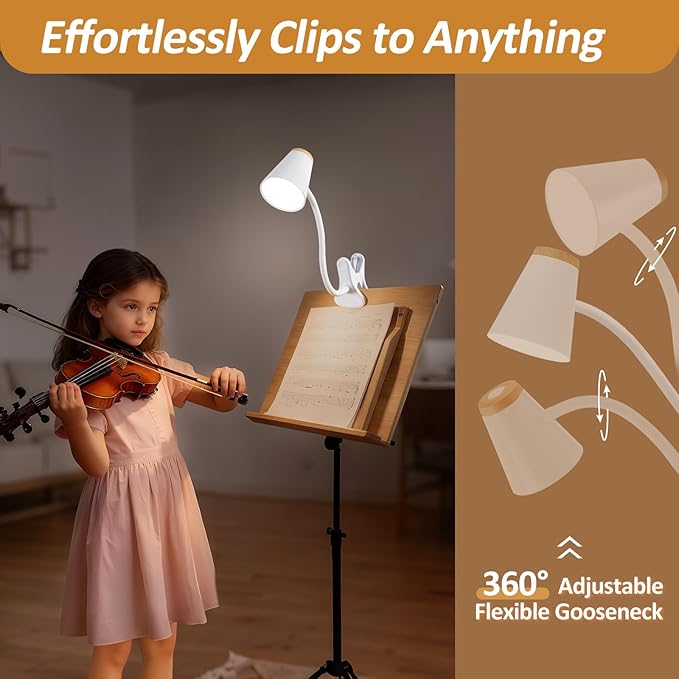 - Sturdy Clamp & Flexible Gooseneck Lamp: The clamp features scratch-resistant foam and opens up to 5cm, allowing it to securely attach to a variety of surfaces—whether it's a workbench, computer desk, headboard, bedside table, sewing table, or any board or shelf. With its 360° flexible gooseneck, this clip-on light can be easily adjusted to any angle you need. Perfect for picture editing, bedtime reading, dorm studying, painting, sketching, playing the piano, knitting, and all kinds of crafts!