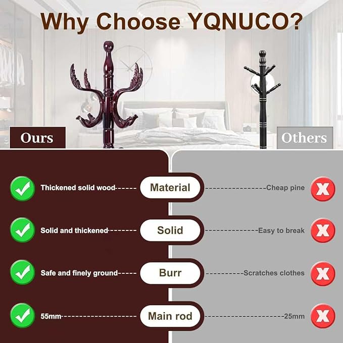 - AAA LEVEL BIRCH WOODEN MATERIAL: This coat rack is crafted from high quality solid birch wood, ensuring durability and a sturdy structure capable of holding your clothes and items without wobbling. The freestanding coat rack’s double-thickened, round base offers excellent stability. It’s a reliable choice that brings both steadiness and elegance to your home!
