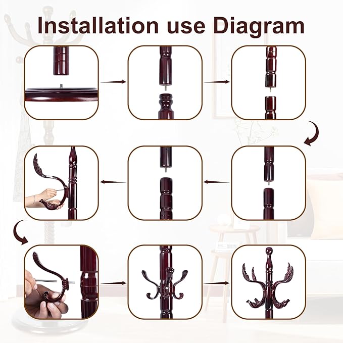 - EFFORTLESS AND QUICK ASSEMBLY: The coat rack comes together effortlessly in mere minutes. Simply tighten the frame poles and hooks with the threaded inserts, and your coat rack is ready to use. No complicated tools required. Save time and effort to enjoy a convenient lifestyle and effortlessly create a stylish home of your own.