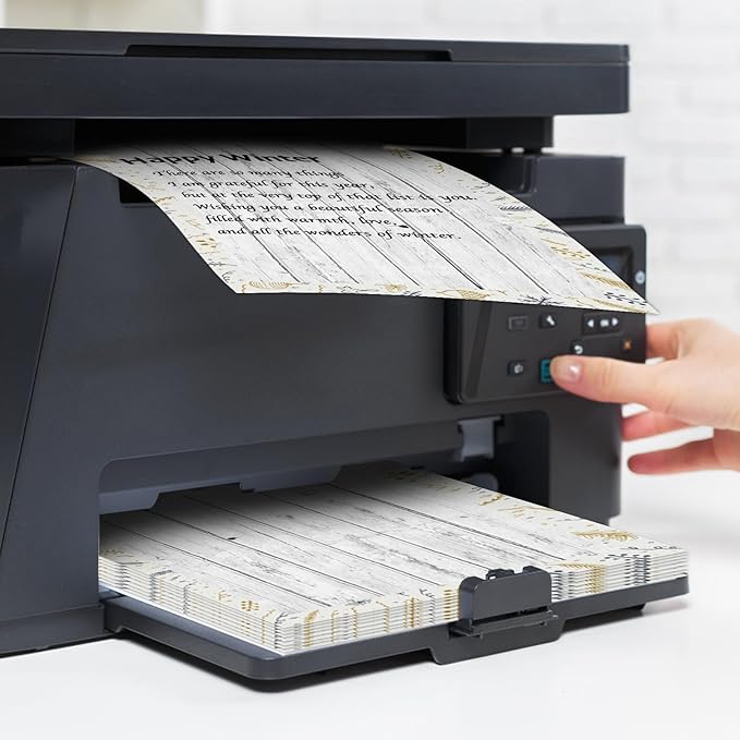 - Inkjet Printer Compatibility: The Christmas wooden grain stationery letter paper compatible with most inkjet and laser printers,you can enjoy the convenience of personalization with your inkjet printer.This winter wooden grain computer paper 8.5x11 allows you to effortlessly add a personalized touch to your invitations,announcements,and personal messages