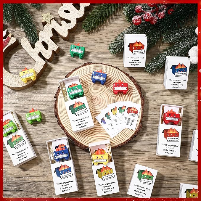 - Sufficient Quantity: you won't be disappointed with our emotional affirmation small gifts! The package includes 25 resin dumpster trash shape, 25 gift boxes, and 25 inspirational cards with "it's fine I`m fine everything is fine"; They are very exquisite and cute with interesting puns, they're suitable for when you need to give out many tokens of appreciation or encouragement with a cute twist to bring warmth to others