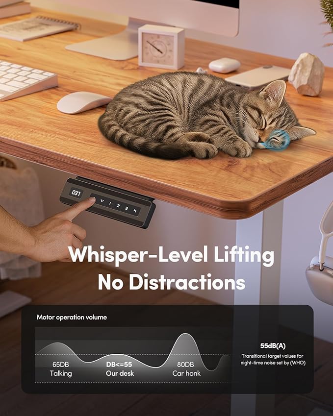 - 4 Memory Height Presets: The Fezibo Electric Standing desk features an intuitive LED controller for quiet operation. It allows you to save up to 4 custom height settings to seamlessly switch between your preferred heights, ensuring you have a focused, distraction-free workspace.