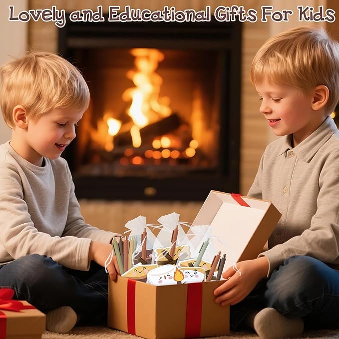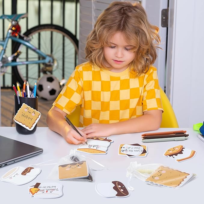 CJiangpo Marshmallow Sticky Note Set - 24 Pack Marshmallow Sticky Note Pads with Ballpoint Pens Ribbons, Funny Memo Pad Stationery Set Classroom Rewards Bonfire Party Gift for Kids Appreciation Gifts