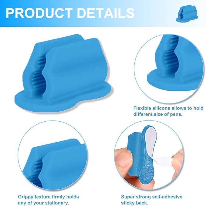 - Durable Silicone Material: Made of BPA-free, kid-safe silicone, each desk pencil holder is flexible, non-sticky, and long-lasting, with a strong adhesive back that keeps pens in place during daily use.