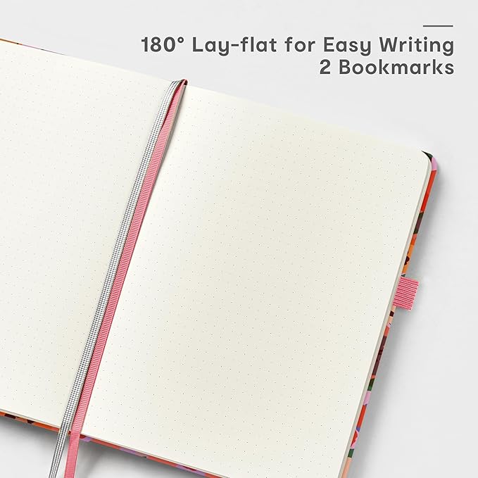 - 180° LAY-FLAT DESIGN: The lay-flat design allows for easy writing and ensures that you can utilize every page efficiently. Journaling, note-taking and planning has never been easier! 2 Bookmarks to help you find important content faster
