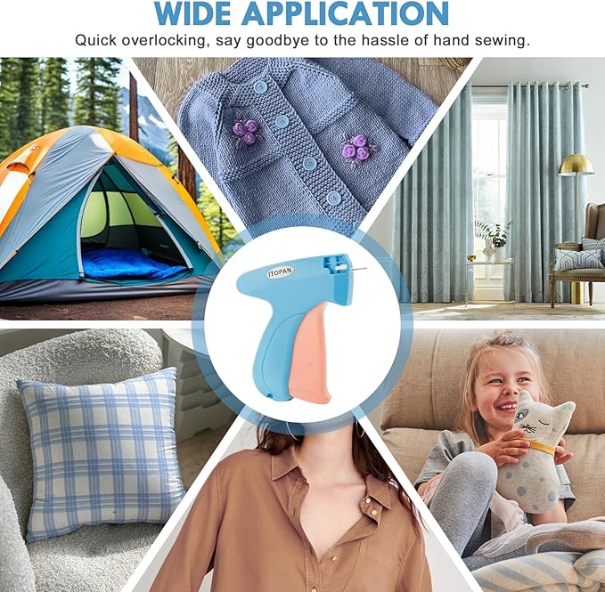 - Versatile Applications: This stitchy stitch gun is highly versatile. It can be used for fixing denim garments, hemming pants, repairing seams. And it can quickly attach cards, brand labels, and price tags to clothes, Plush toys,cloth bags, socks, etc. Stitchy gun is a must sewing kit have for DIY enthusiasts and professional tailors