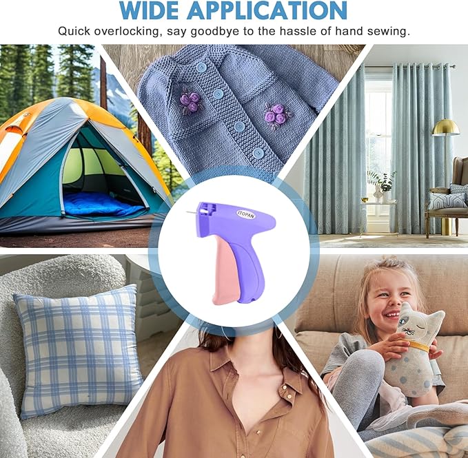 - Versatile Applications: This stitchy stitch gun is highly versatile. It can be used for fixing denim garments, hemming pants, repairing seams. And it can quickly attach cards, brand labels, and price tags to clothes, Plush toys,cloth bags, socks, etc. Stitchy gun is a must sewing kit have for DIY enthusiasts and professional tailors
