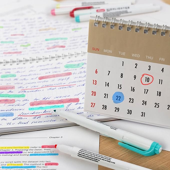 - 【Advanced Water-Based Ink Technology】:Smilo colorful highlighters use environmentally friendly water-based ink that is non-toxic, odorless, and safe. The ink is semi-transparent, allowing text to remain clearly visible after marking. It glides smoothly without skips, clumps, or uneven color distribution.