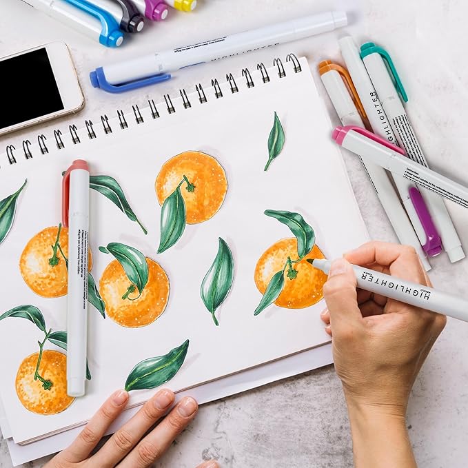 - 【Dual-Tip Design】:Features a dual-tip structure: each highlighter includes a 4mm chisel tip for broad highlighting and a 1mm fine tip for precise underlining or detailed notes. The two tips allow flexible switching to accommodate various marking needs.