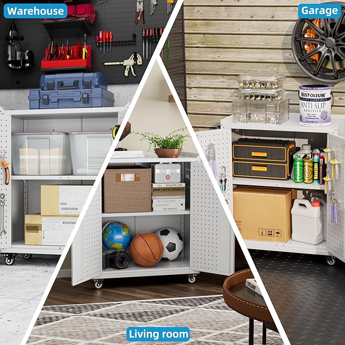 - [Reliably] Our rolling metal storage cabinet is built with a reinforced steel frame and powder coating, making it both corrosion and stain-resistant, perfect for garage home office storage.