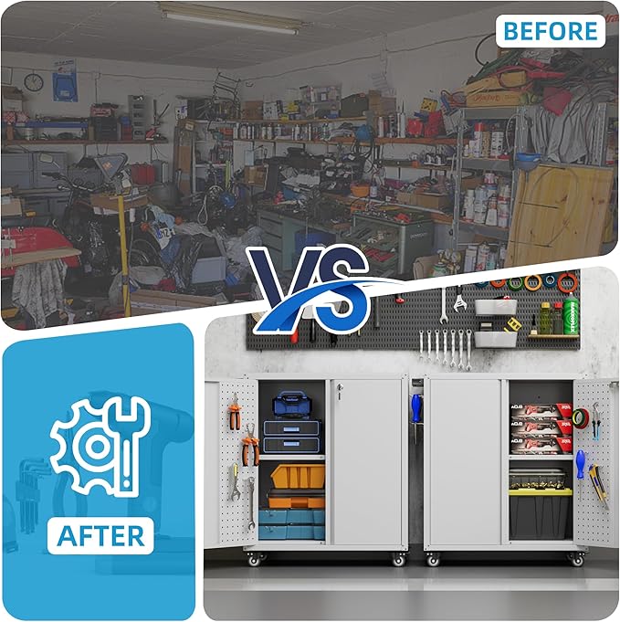 - [Easy to Assemble and Perfect Customer Support] This metal storage cabinet comes with easy-to-follow paper instructions and videos to help you set it up quickly. Any problem after receiving them(like damages, package lost,missing accessories) ,you can contact us. We will try our best to help u solve the problem.