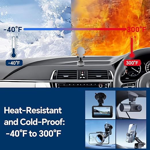 - Heat and Weather Resistant:Heat resistant double sided tape withstands extreme cold & heat (-40°F to 300°F). Secures dash cams, phone mounts, and GPS to your windshield or dashboard