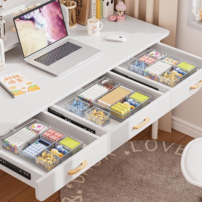 - 【Multi-purpose Drawer Organizer tray】The right size and matching can be applied to any drawer divider.It can be used as bathroom drawer, cosmetic organizer, office storage and craft storage.