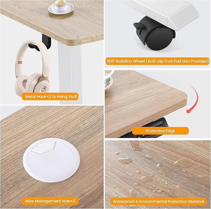 - 【Durable & Quiet Motor】– Designed for peak performance, our electric standing desk boasts a high-quality motor that delivers smooth, quiet height adjustments from 27.9" to 46.8", while the advanced anti-collision system ensures safe operation without interruptions