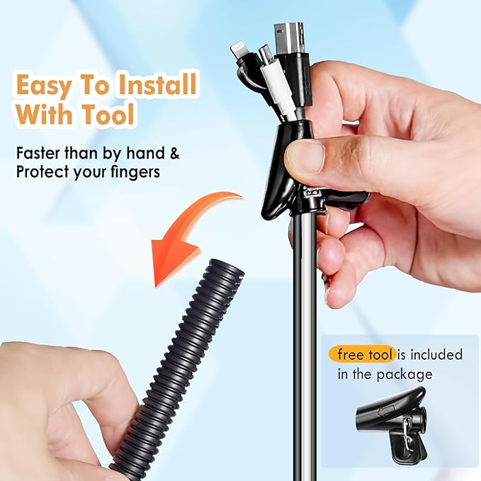 - ✳️✳️✳️ Easy & Safe Installation -The included installation tool is our extra surprise for you, making installation easy and fun. Wires slide in much faster than by hand, saving you time and preventing scraped fingers. Bring this split cable sleeve home today and enjoy easier, safer wiring!
