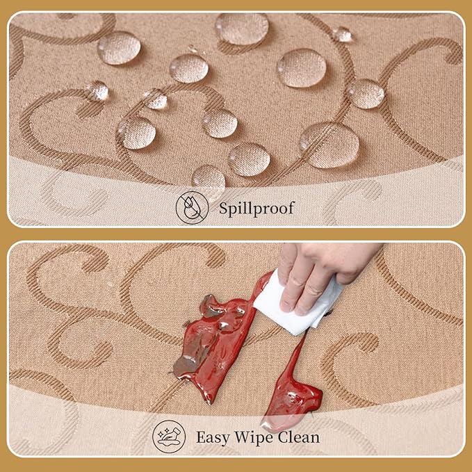- Easy Care and Durable: Machine washable for convenience, this gold table cloth dries quickly and requires minimal ironing. Its waterproof and stain-resistant properties make it perfect for dining table.