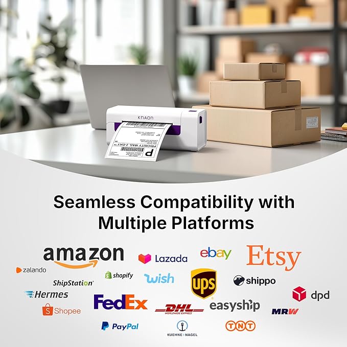 - Seamless Multi-Platform Compatibility: The wireless Wi-Fi shipping label printer seamlessly integrates with all major platforms, including Amazon, eBay, Shopify, USPS, UPS, Etsy, PayPal, Poshmark, DHL, and more. Enjoy smooth, efficient label printing across your preferred services with ease.
