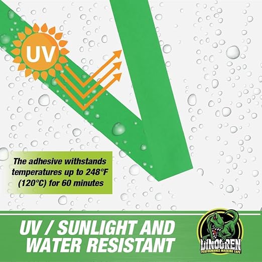 LAUCO DINOGREN High Performance Masking Tape for Car Paint, Heat & Water Resistant, Multi-Purpose Green (1 in (9 Rolls))