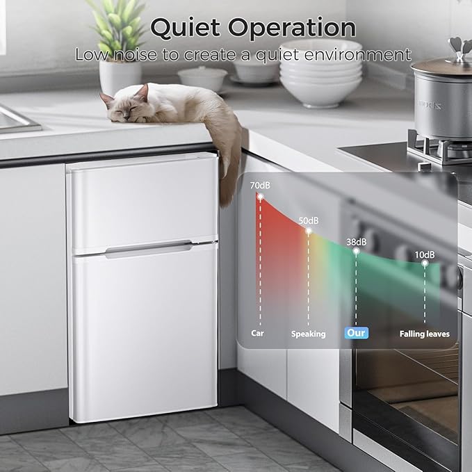 Kismile Mini Fridge with Freezer,3.2 Cu.Ft Compact Mini Refrigerator with Double 2 Door,Adjustable Temperature,Full Size for Home,Kitchen,Dorm,Apartment,Retro White