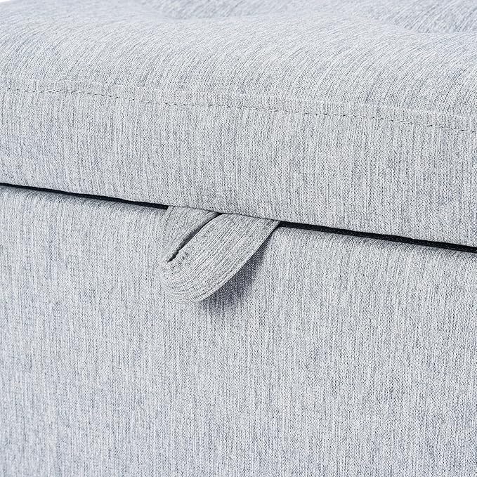 - Scratch-Resistant Linen Fabric in Modern Ice grey—Wrapped in a stylish, scratch-resistant linen-look fabric, this ottoman with storage adds a pop of color and texture to your space. Perfect for someone who need a durable yet attractive ottoman that fits into any modern or traditional decor.