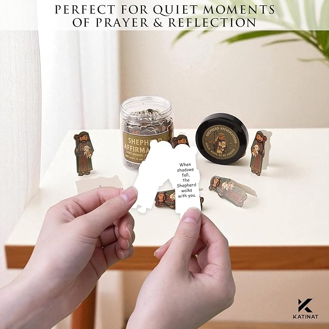 - Unique Shepherd & Lamb Design – Each of the 60 cards is beautifully cut-out with a shepherd and lamb illustration, a timeless symbol of faith, guidance, and comfort. Not just words – but art you can hold.