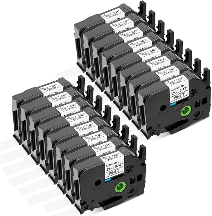 - 【Replacement for Ptouch Tape 12mm 0.47 white Clear and Easy to Read】Tze 12mm 0.47 laminated white tape Compatible with brother pt-2040 label maker tape refill printing is smooth and clear and is easy to read. Compatible with brother p touch tape themselves are slightly glossy, but do not cause glare under bright light, making them unreadable