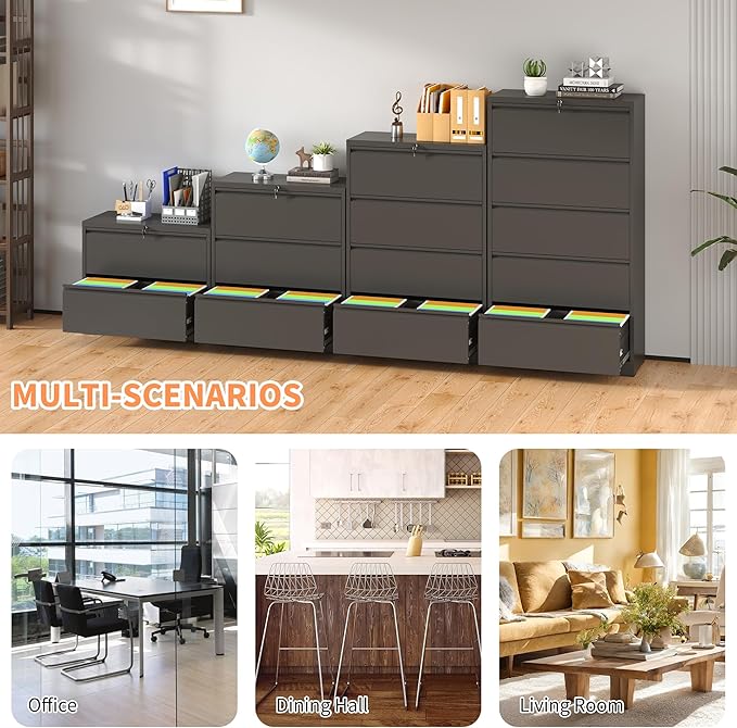 - 【Silent & Smooth Full-Extension Slides】High-quality ball-bearing glides let drawers open quietly and fully, making file access smooth and effortless—ideal for home or office use.