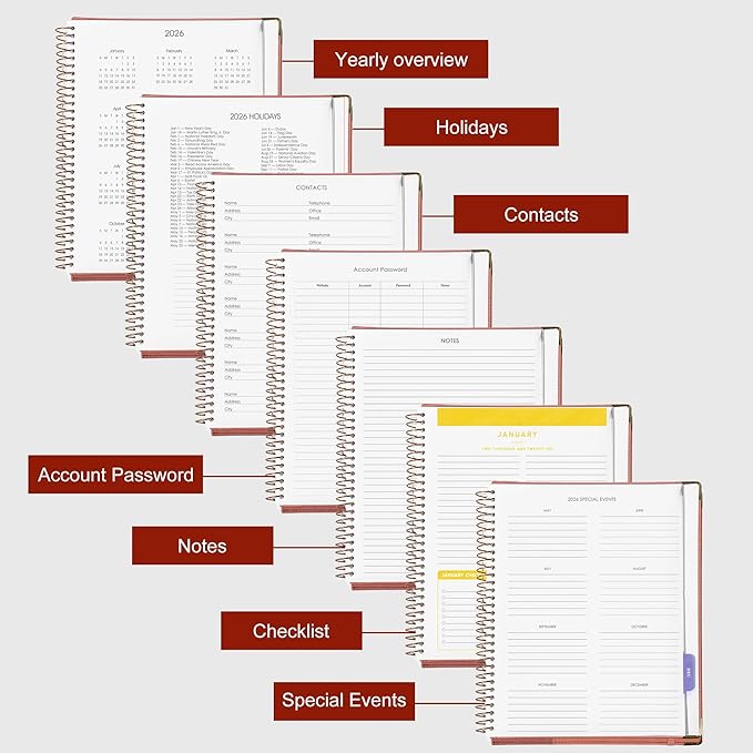 - ๐๐ข๐๐ญ & ๐๐ซ๐ ๐๐ง๐ข๐ณ๐๐ซ๏ผMore than just a planner, it serves as a thoughtful gift and practical organizer, helping you plan with intention, stay productive, and enjoy your 2026 calendars or planner monthly throughout the year.