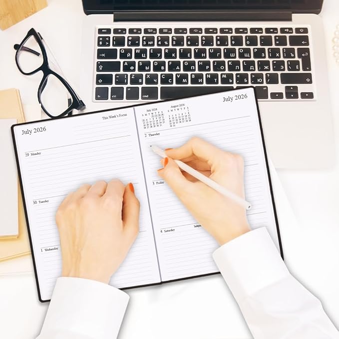 - SUPERIOR QUALITY - Sturdy hardcover to protect the inner pages well. Thick paper to reduce ink leakage, erase fraying and shade issues. This distinctive monthly & weekly planner features high quality 100gsm white paper for easy writing and reducing ink leakage, erase fraying and shade issues, providing clean writing space for your appointments, to-dos and reminders.