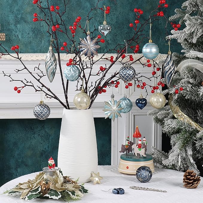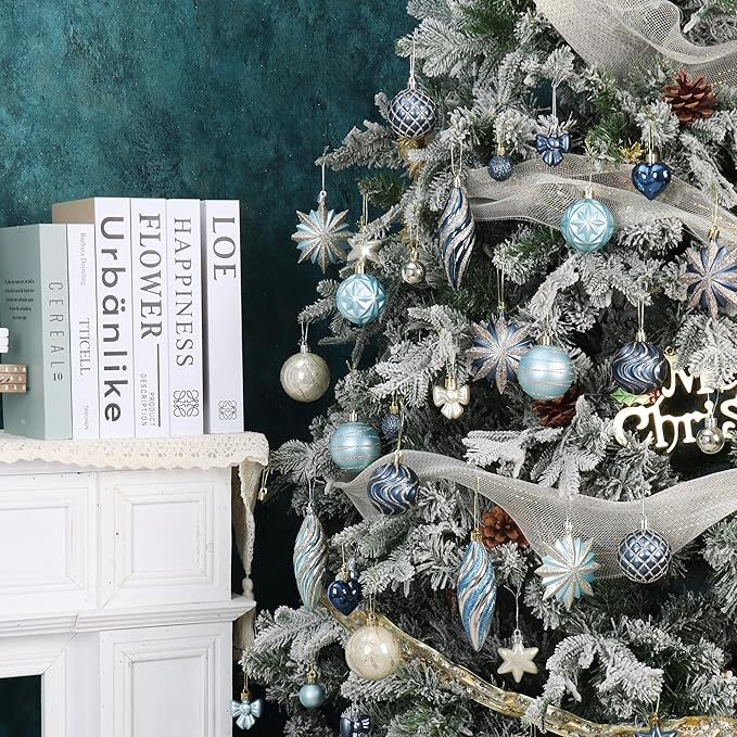 - PREMIUM MATERIAL: These christmas decorations are made of shatterproof premium plastics. Even for families with children and pets, you can use this set of blue gold christmas ball ornaments without worrying about accidental damage, bringing peace of mind to your christmas