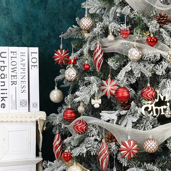 - PREMIUM MATERIAL: These christmas decorations are made of shatterproof premium plastics. Even for families with children and pets, you can use this set of gold red christmas ball ornaments without worrying about accidental damage, bringing peace of mind to your christmas