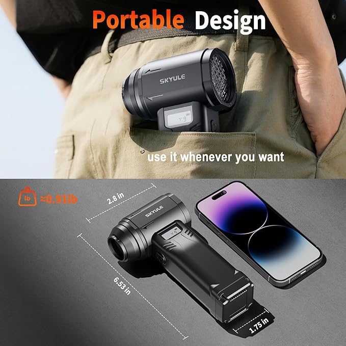 - 【Ultra-Powerful 400W】The SKYULE electric air duster features a 40mm-ultra-powerful brushless motor,delivering 120 m/s airflow, wind pressure of up to 560g, Our compressed air duster can effectively remove dust and debris