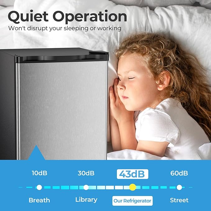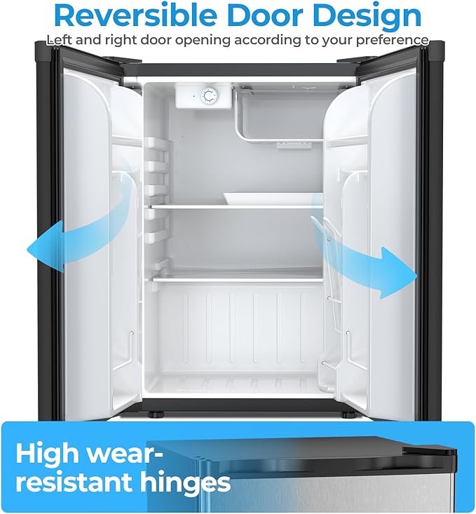 Antarctic Star 2.56 Cu.Ft. Mini Fridge with Freezer, Small Refrigerators with Adjustable Thermostat, Low Noise, Energy Saving, Compact Refrigerators for College Dorm, Office, Bedroom, Stainless Steel