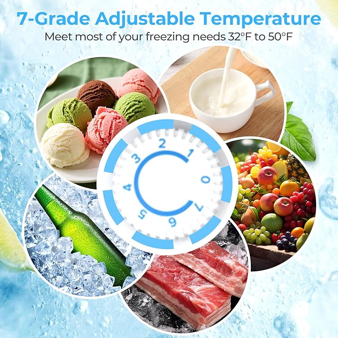 - Precise temperature control, flexible adjustment: Equipped with a 7-speed temperature control system, the temperature adjustment range covers 32℉-50℉ to meet the diverse needs of refrigerated fruits and vegetables, beverage chilling, etc., and create an exclusive preservation environment with ease.