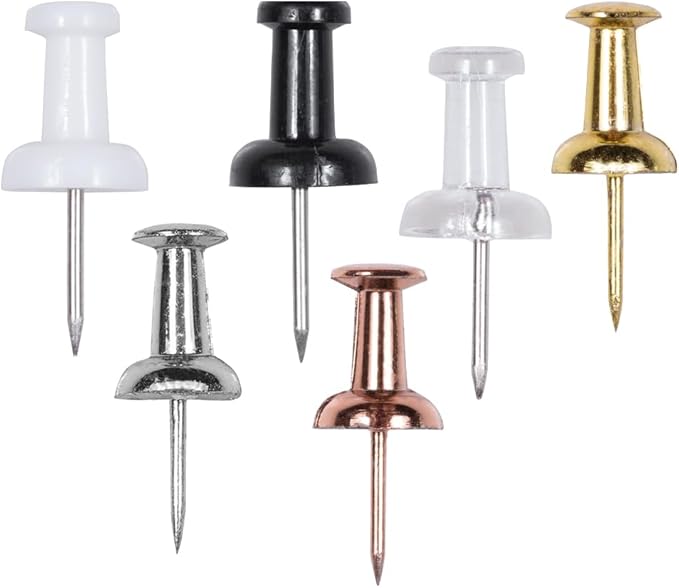 - Plastic Head Thumb Tacks | Colors: Gold, Rose Gold, Silver, Black, White, Silver