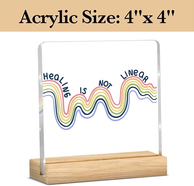 - 【Perfect Size】This acrylic measures approximately 4 x 4 inches (get a 4" x 4" acrylic sign, a 4" x 1.5" x 0.8" wooden stand, and a gift box), which can decorate any desktop.