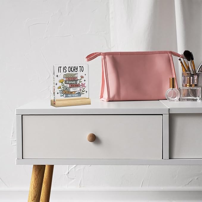 - 【Perfect Size】This acrylic measures approximately 4 x 4 inches (get a 4" x 4" acrylic sign, a 4" x 1.5" x 0.8" wooden stand, and a gift box), which can decorate any desktop.