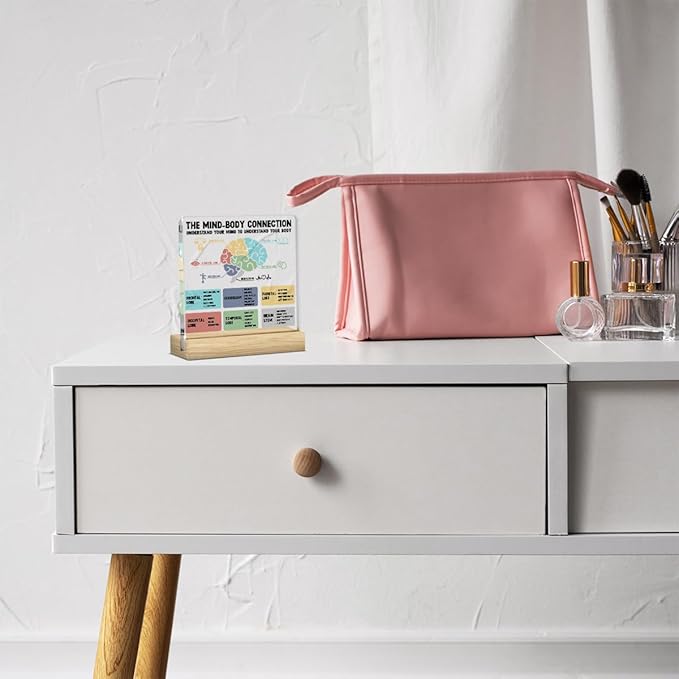 Therapy Office Decor, Mental Health Desk Decor, School Counselor Gifts, Gifts for Women Psychologist School Counselor Therapist, Halloween Christmas Gift Mind Body Connection Acrylic Sign