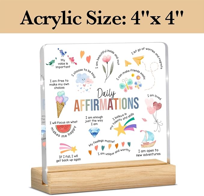 - 【Perfect Size】This acrylic measures approximately 4 x 4 inches (get a 4" x 4" acrylic sign, a 4" x 1.5" x 0.8" wooden stand, and a gift box), which can decorate any desktop.