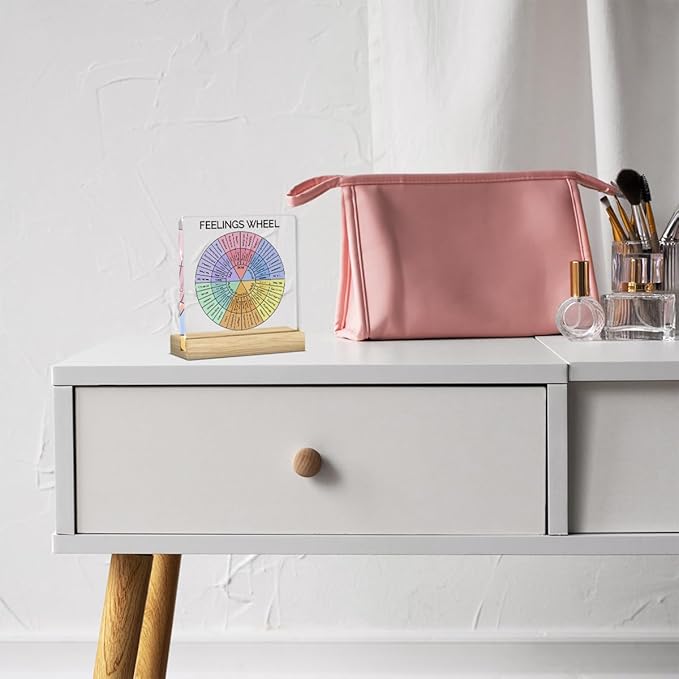 Therapy Office Desk Decor, Mental Health Decoration, School Counselor Gifts, Gifts for Women Psychologist School Counselor Therapist, Halloween Christmas Gift Feelings Wheel Acrylic Sign