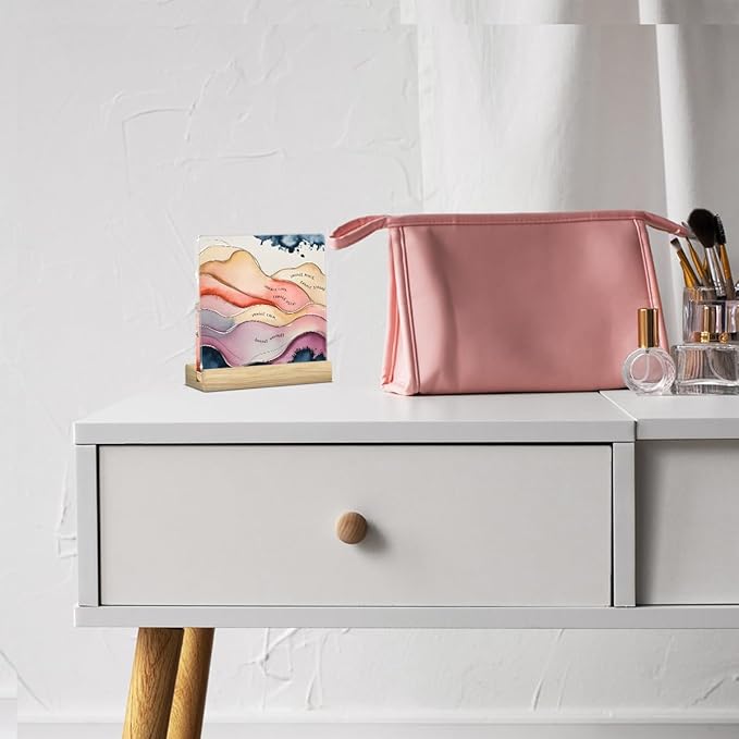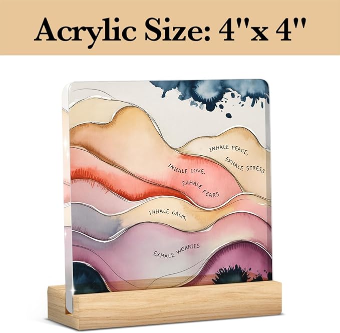 - 【Perfect Size】This acrylic measures approximately 4 x 4 inches (get a 4" x 4" acrylic sign, a 4" x 1.5" x 0.8" wooden stand, and a gift box), which can decorate any desktop.