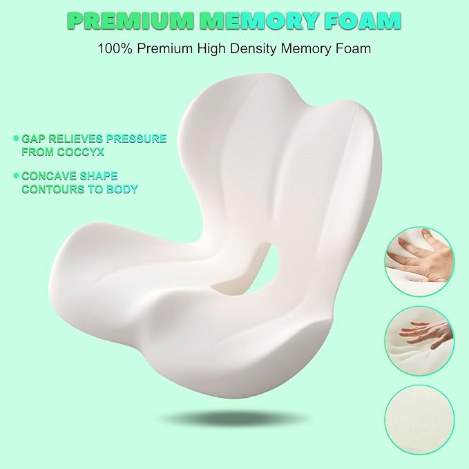 Buttocks Cushion for Office Chair Memory Foam Seat Pad for Butt Support Tailbone Relief Ergonomic Chair Cushion for Home Car Travel or Work (Off White)