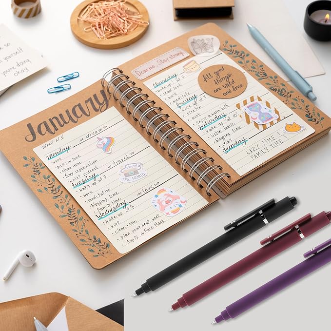 - CLIP AND RETRACTABLE DESIGN--Lightweight colored pens for school with a practical clip on the cap that prevents it from rolling off the table and can be easily attached to books, notepads, or bags, so you always have your pen handy. This gel pen adopts a retractable design. When not in use, press the end of the pen to retract the tip, preventing ink from staining books or pockets.